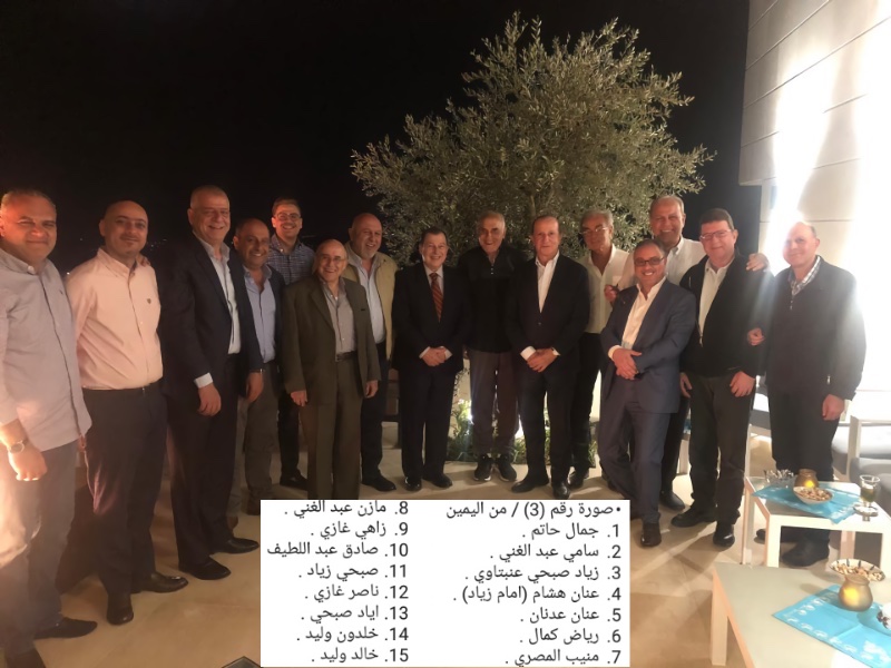 Right to left: Jamal Hatem, Sami Abdulghani, Ziyad Sobhi Anabtawi, Anan Hisham (in front of Ziyad), Anan Adnan Anabtawi, Riyad Kamal, Munib Al-Masri, Mazen Abdulghani, Zahi Ghazi, Sadeq Abdul-Latif, Sobhi Ziyad, Nasir Ghazi, Iyad Sobhi, Khaldoon Waleed, Khaled Waleed |