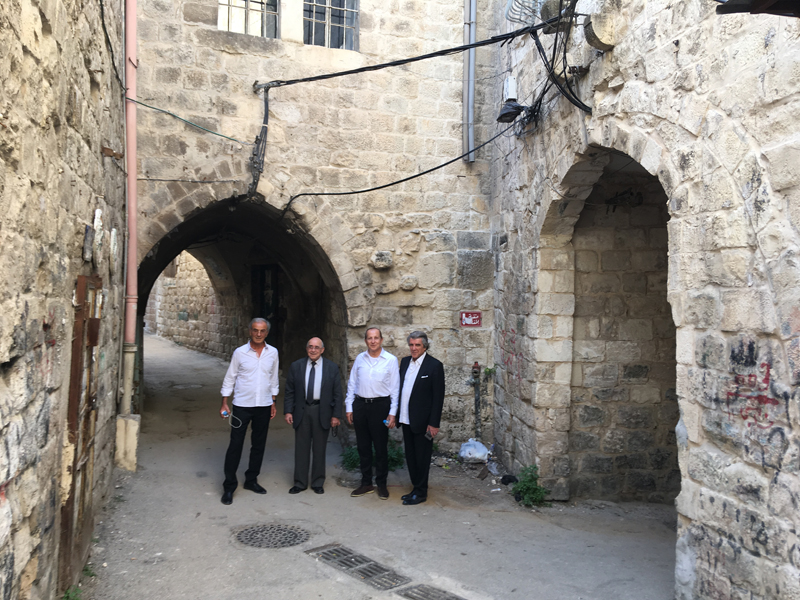Enterance to the Old Town, left to right, Anan Anabtawi, Sadeq Anabtawi, Riad Kamal, Faris Farra